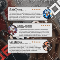 As a private trainer, Longshore has prepared numerous signal-callers for their jump into the NFL, sharpening fundamentals and executing pro days across the country. Coach Longshore has also used his experiences to create an online digital curriculum to help quarterbacks quickly diagnose defenses and attack their weaknesses. Coach Longshore’s strengths are in fine tuning the kinetic mechanics of the throwing motion and assisting in the complete mental preparation of quarterback play.